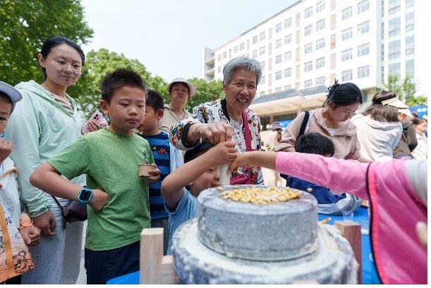 面向科学发展前沿,今年的科普活动增设了作物表型组学科普专区,通过展板宣传和自制表型设备实验操作,解读作物表型组学在作物育种领域对农业生产和可持续农业发展的重大意义。为传承“劳动最光荣”的传统美德,本次活动还准备了石磨和织布机等传统农具,青少年们通过磨盘转动、札弄机杼,让劳动教育像种子般播撒到童年。